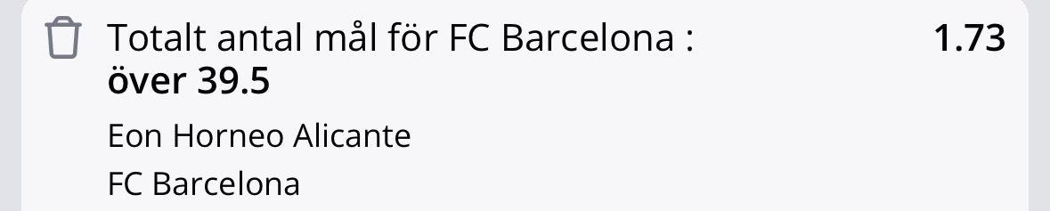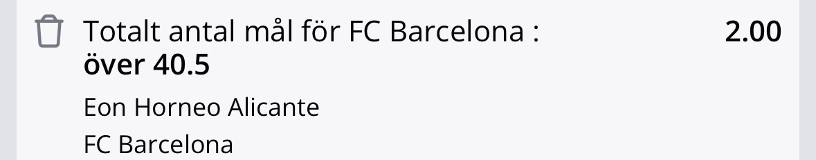 Alltid höga linor när Barca är involverade och på Betsson får vi ö 39.5 mål till oddset 1.73 och ö 40.5 mål till oddset 2. 4 respektive 2 units spelas.