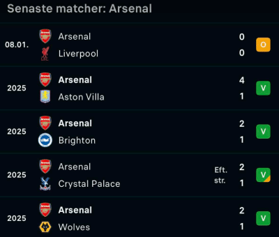 ✅ Arsenal är urstarka hemma med målskillnaden 26-5, men har släppt in mål i 4/5 senaste.