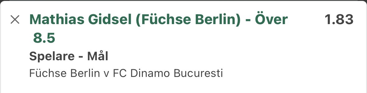 Linan ö 8.5 mål av Gidsel anser jag vara för låg och spelar 3 units till oddset 1.83 hos Bet365 som är enda bolag som i skrivande stund har linan ute.