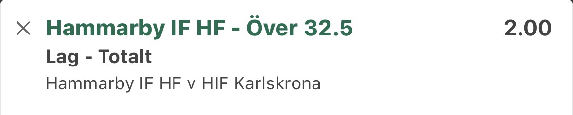 Handbollsligan och mötet Hammarby-Karlskrona får 3 units hos Bet365 där vi får oddset 2 gånger pengarna.