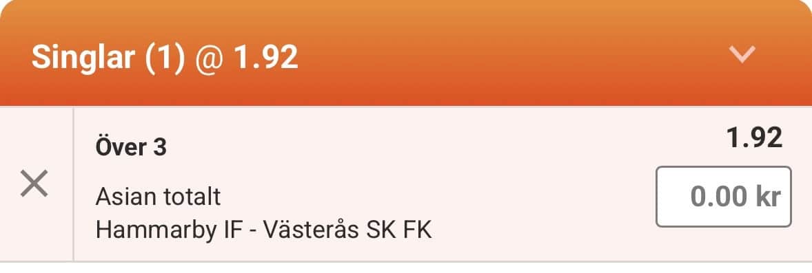 Ingen kan säga något annat än att Bajen är helt rätt favorit. Jag ser en matchbild där hemmalaget kommer i våg efter våg och med vetskapen att Västerås oavsett motstånd går ut och kör sin grej med sin spelidé så ser jag en målrik fight framför mig! Asian ö 3 mål spelas till oddset 1.92 och kör in 5 units där. Insats tillbaka om det stannar på 3 mål. Argument följer.