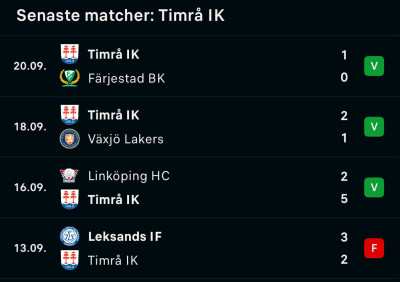 ❌ Mycket av Timrås segrar kommer tack vare målvaktsspelet och försvaret. Har de en dålig dag på jobbet så har inte Timrå den offensiva kraften för att göra massa mål framåt. De vinner sällan målrika matcher.