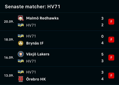 ✅ HV71 kommer med svag form och har förlorat alla 4 matcher hittills.