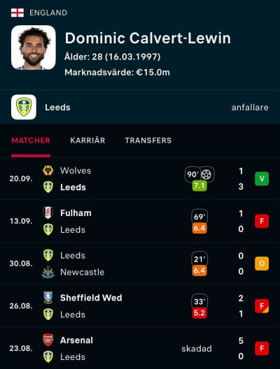 ✅ Calvert-Lewin har löst detta spel i alla 4 matcher han spelat för Leeds, även då när han gjort sena inhopp.
