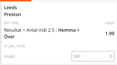 Spel: Leedsseger + ö2.5 mål tot
