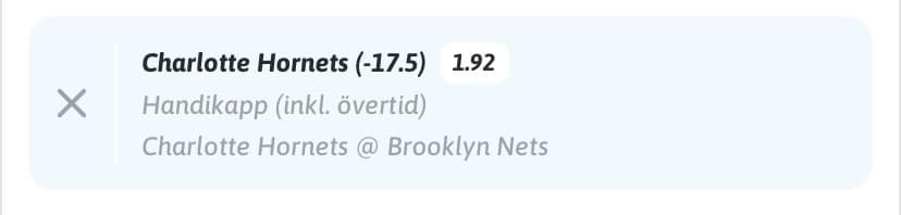 Vi har sett det förr, när Hornets torskat 2 raka kommer dom tillbaka med en turboinsats. Här möter man ett Nets som lagt ner för säsongen och lirar med rookies och roterar friskt i truppen. Jag synar att Hornets slaktar Nets här till 1,92x degen.