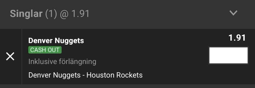 Goddag alla läsare! 3/4 matcher satt på kupongen som delades exklusivt i vår messengergrupp men Pistons svek tyvärr efter att Thomson blivit utslängd från matchen i andra quartern och Mavs kunde utnyttja oredan som uppstod i Pistons under minuterna som följde. Ikväll kollar vi in Nuggets mot Rockets och 1,91 liras.