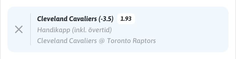 Godkväll basketfans! Undertecknad har firat 40 jordsnurr men är nu tillbaka med mer slutspelsbasket på agendan. I natt kollar vi Raptors mot Cavaliers. 1,93 liras.