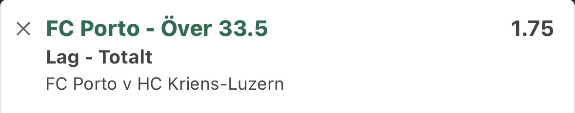 Europa League och vi tar oss återigen Porto som gav oss vinst senast. Idag tar man sig an Kriens på hemmaplan och oddset 1.75 spelas med 4 units hos Bet365.