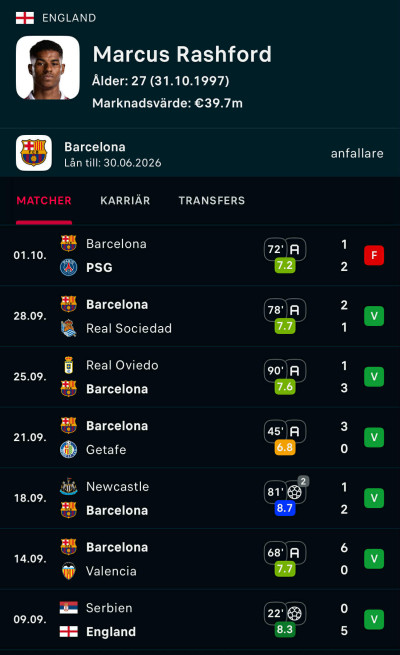 ✅ Yamal och Raphinha är skadade så troligtvis får Rashford lira 90 min.