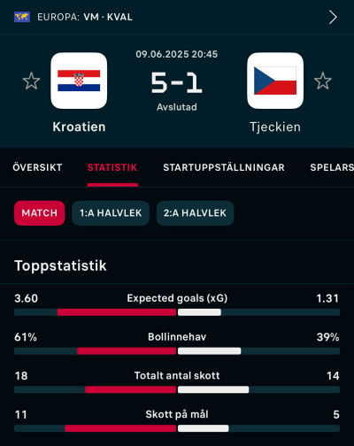 ✅ Tjeckien måste gå för seger i denna match för att ha en liten chans på gruppsegern som ger direktplats till VM.