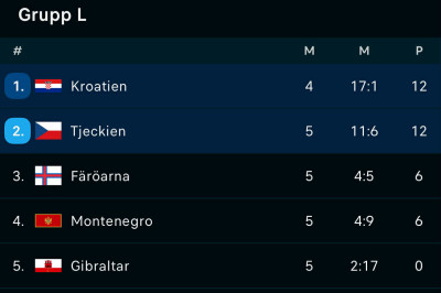 Både Tjeckien och Kroatien står på 12p medans de andra lagen är långt efter. Men Kroatien har en match mindre spelad så det är en viktig match detta för utgången av gruppspelet. 1a platsen ger direktplats medans 2a platsen går vidare till kval.